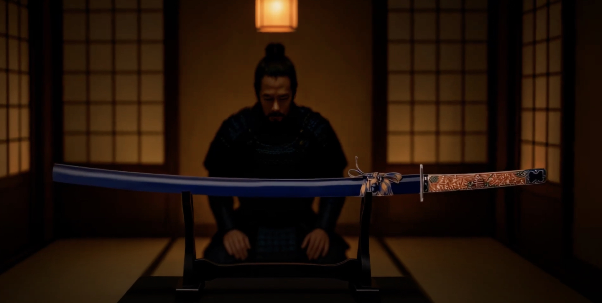 Na ostrzu unikatowy dwustronny grawer przedstawiający sceny z historii Japonii