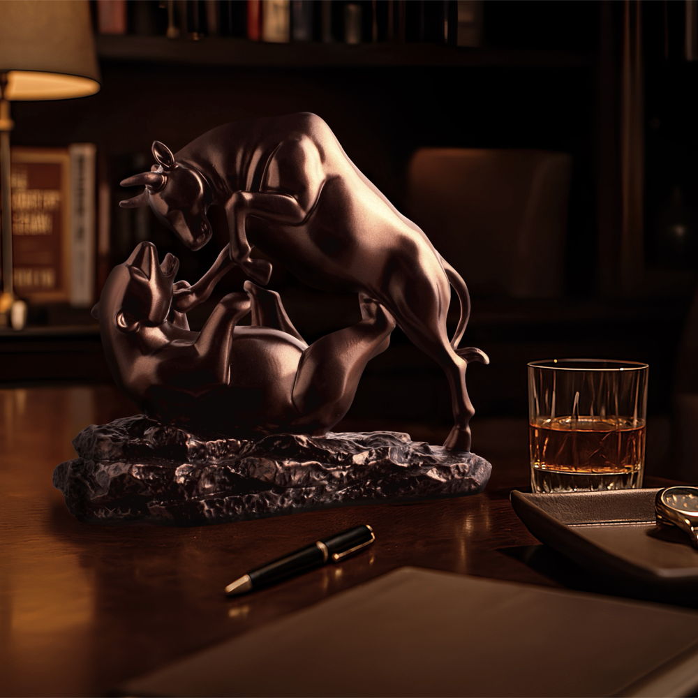 ➡️ Wyrazisty symbol: motyw walki hossy i bessy to doskonały sposób na podkreślenie pasji do inwestowania, przypomnienie o determinacji i zmienności rynku oraz elegancki element motywacyjny dla zespołu i klientów.