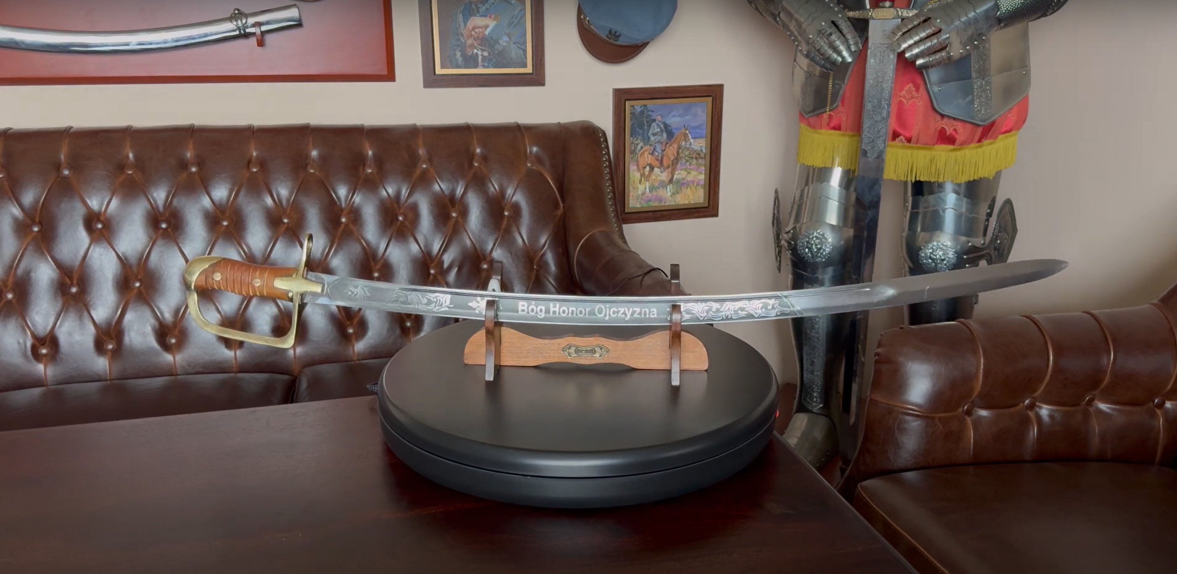 Prezentowana replika to polska "ludwikówka" ostatnia polska kawaleryjska szabla bojowa. Opracowanie tej szabli zajęło wiele lat. Dokonywano wielu prób sprawdzających jej właściwości techniczne. Próby te wykazały, że szabla ta przewyższa jakością zagraniczne szable kawaleryjskie. Produkowane przez "Hutę Ludwików" w Kielcach. Jest to szabla honorowa.